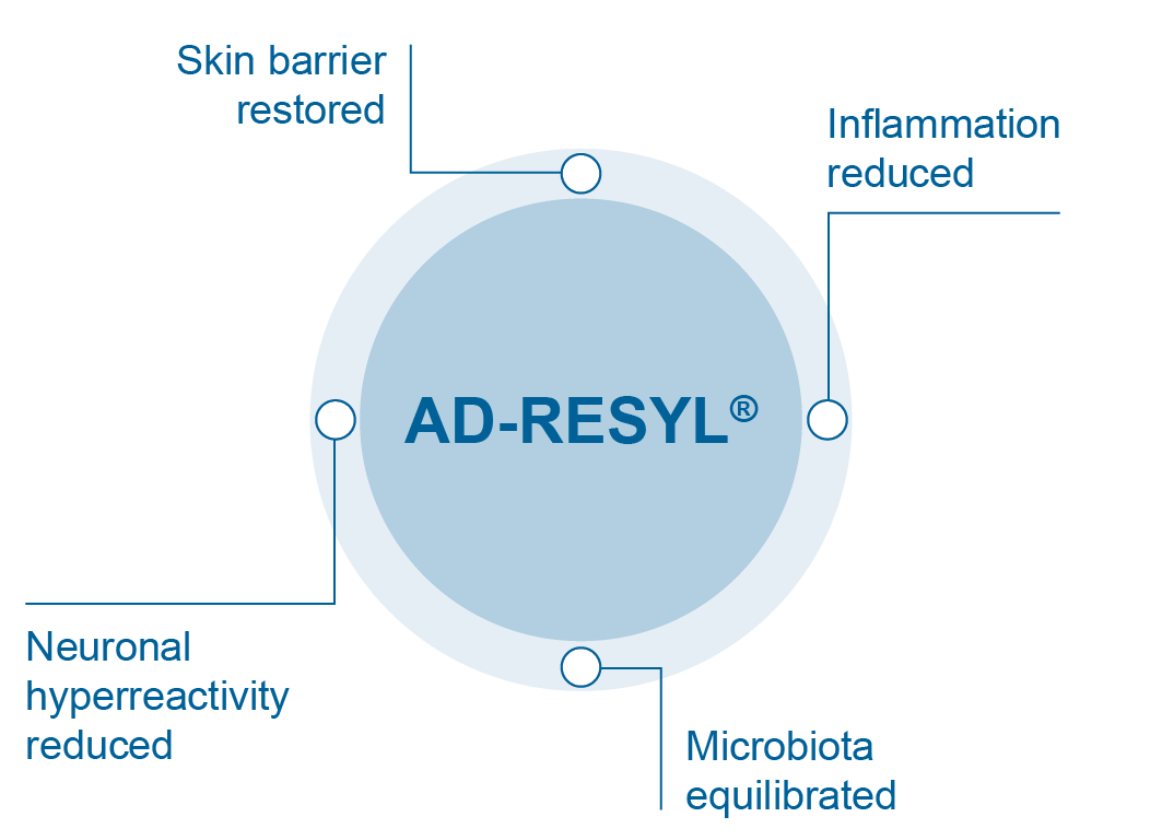AD-RESYL® is a purified natural active principle that has been specifically developed to prevent the clinical signs of atopic dermatitis and prolong periods of remission following corticosteroid therapy.