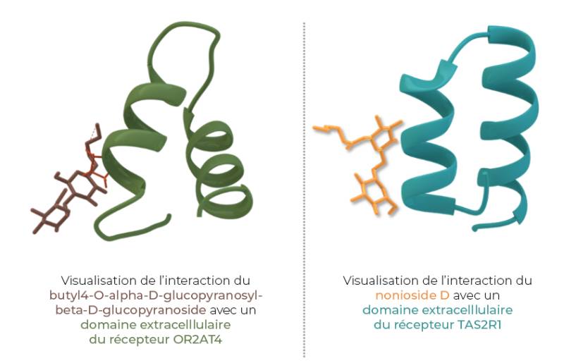 Cette approche a permis d’identifier deux glycolipides présents dans l’ingrédient actif et capables d’interagir, avec les récepteurs olfactifs et gustatifs OR2AT4 et TAS2R1 afin de favoriser la régénération épidermique.